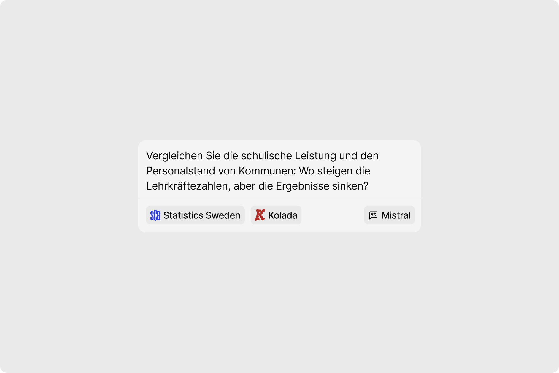 Mit Intric können Sie KI sicher mit den Datengrundlagen der öffentlichen Verwaltung verbinden – von amtlichen Statistiken über Register bis hin zu rechtlichen Rahmenwerken. Sie bringen das Fachwissen, Intric bringt die Flexibilität.