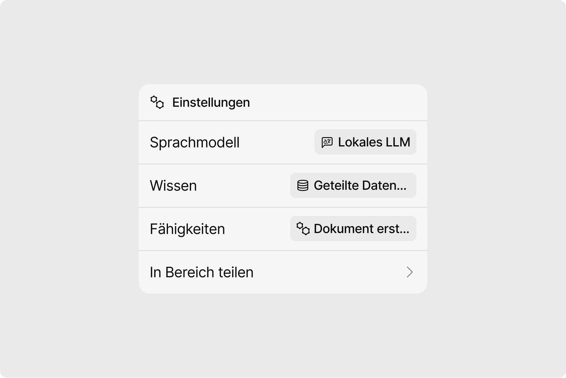 Mit Spaces können Teams und Abteilungen KI-Werkzeuge gemeinsam erstellen, bearbeiten und teilen – in einer sicheren Umgebung. Legen Sie Rollen fest, verwalten Sie Zugriffsrechte und steuern Sie, welche Modelle und Daten verwendet werden.